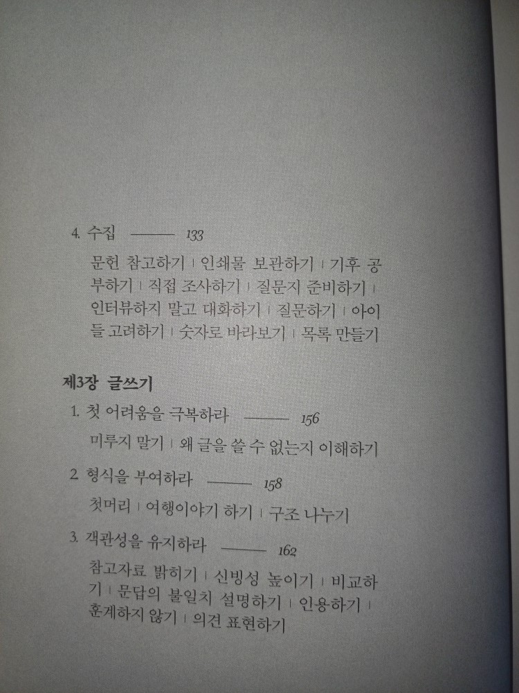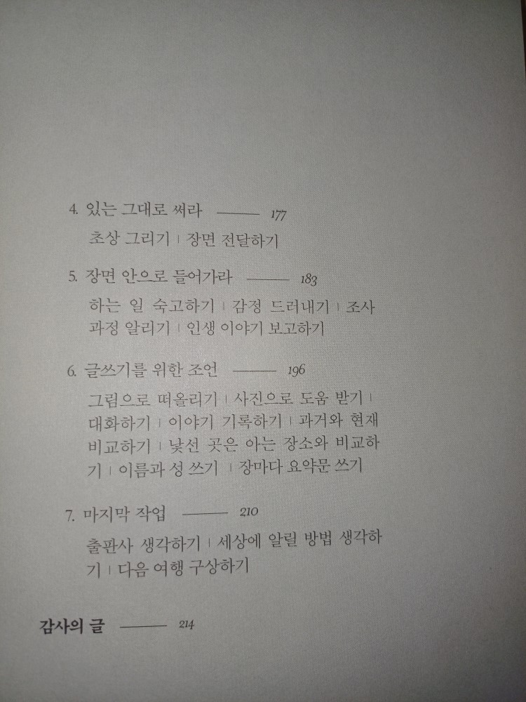 다만 이 책의 제목처럼 이 책의 목차나 소제목들은 제법 그럴싸해서 그것만 염두해 두면 글쓰기 실력이 늘어날 것만 같은 마법의 주문 같습니다. 그래서 이 책의 목차를 그대로 보여드리는 것으로 이번 책 소개는 끝을 내렵니다. 여러분 건강하시길 바랍니다.